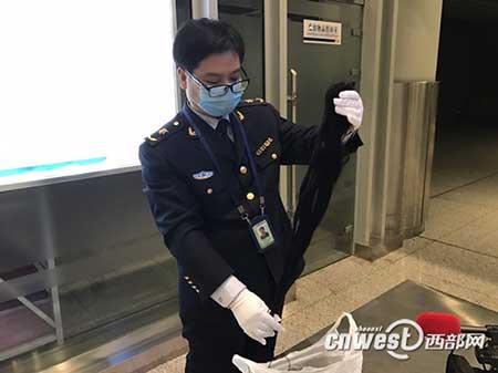 西安咸陽機場出入境檢驗檢疫局科長楊安寧:“這個人發可能帶有潛在的公共衛生危險,可能造成人體傳染病傳播的可能,所以我們截流以后進行檢疫處理,我們叫微生處理,截留以后按照國家總局的2015年第160號《出入境特殊物品衛生檢疫管理規定》進行無害化處理以后我們將銷毀。”